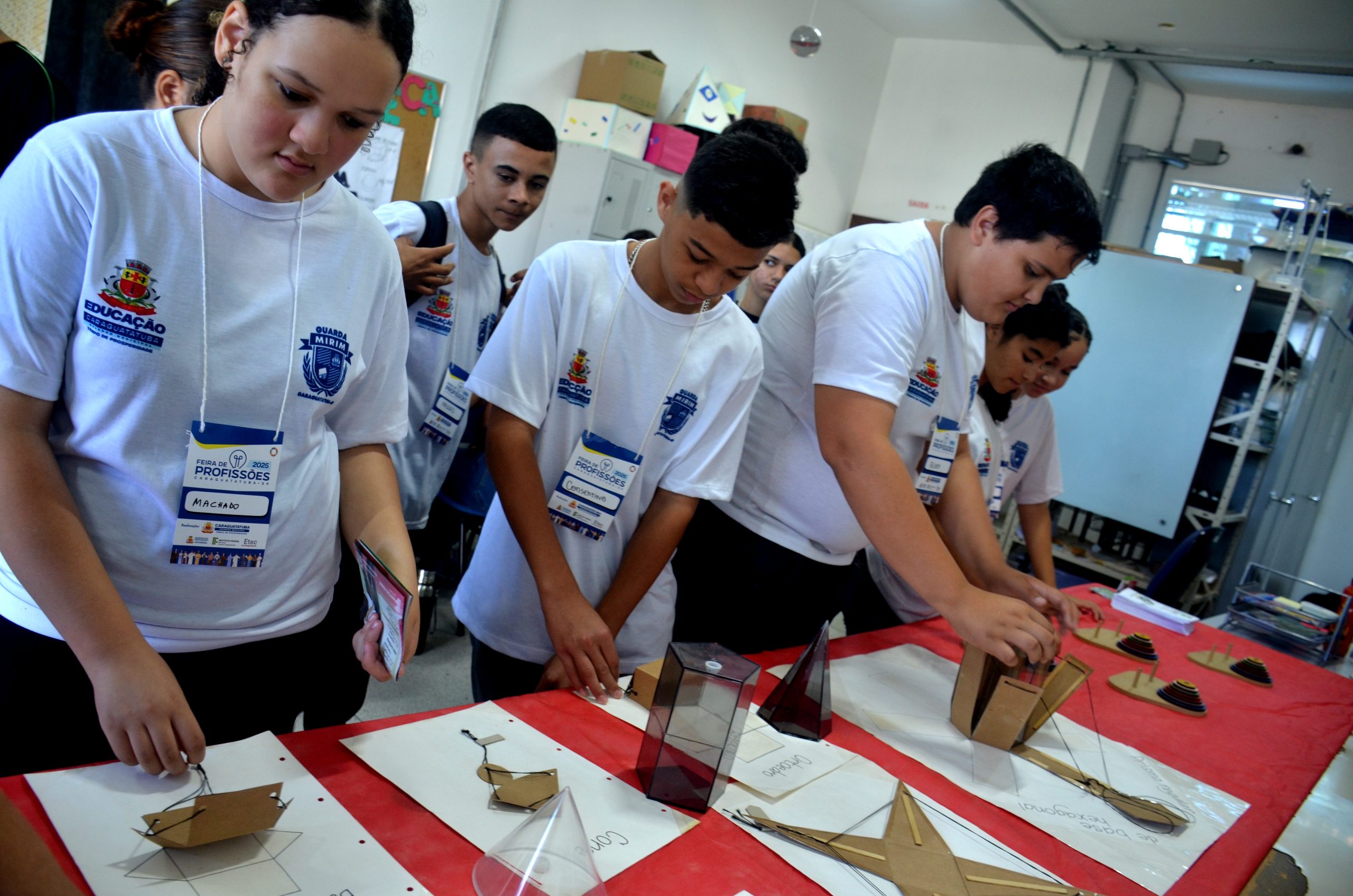 #PraTodosVerem: Alunos e Alunas da Guarda Mirim montam figuras geométricas durante a Feira de Profissões 2025 (Foto: JC Curtis/PMC)