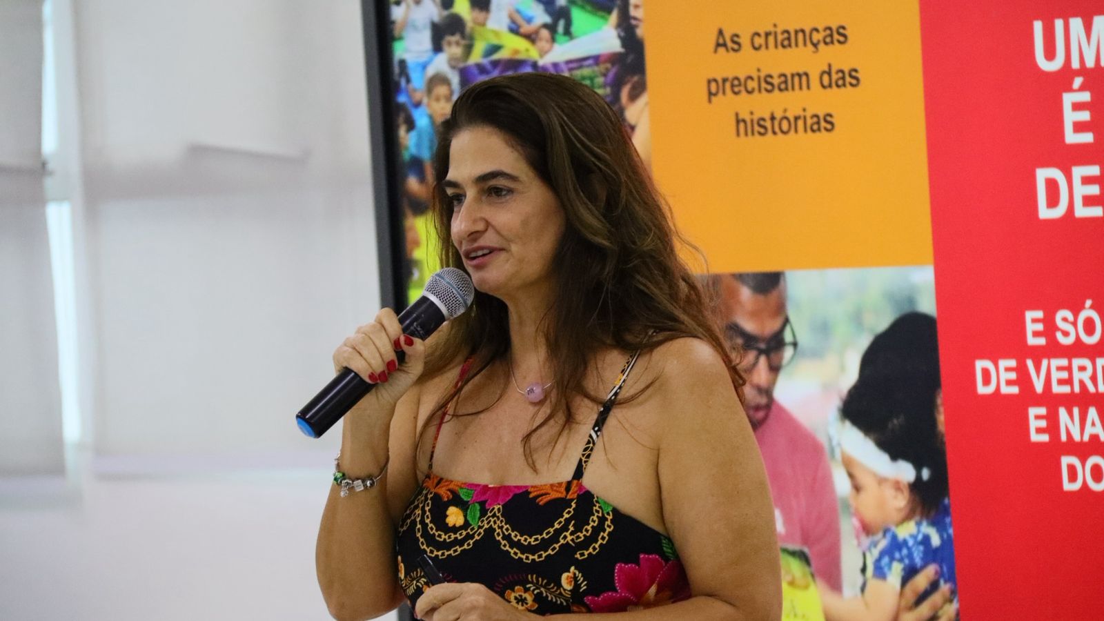 #PraTodosVerem: A escritora Renata Fernandes fala sobre o trabalho desenvolvido com seus livros nas séries iniciais do Ensino Fundamental nas escolas brasileiras (Foto: Fernando Matos/PMC)
