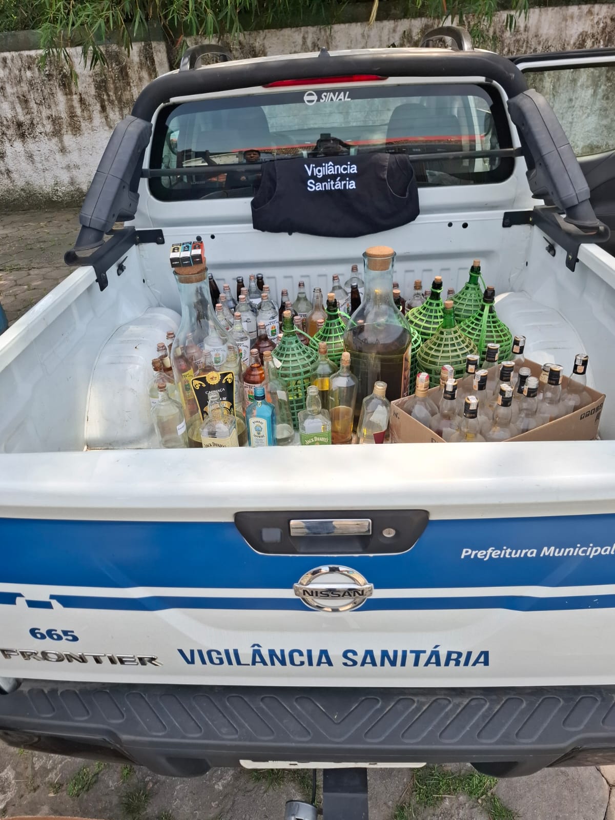 Vigilância Sanitária de Caraguatatuba descarta mais de 100 litros de bebidas sem procedência após fiscalização