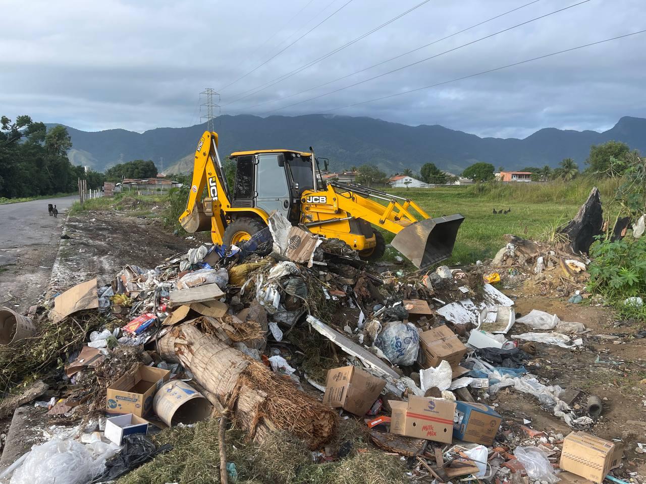 #PraTodosVerem: Retroescavadeira recolhe resíduos descartados irregularmente em via pública da Região Sul (Foto: Divulgação/PMC)