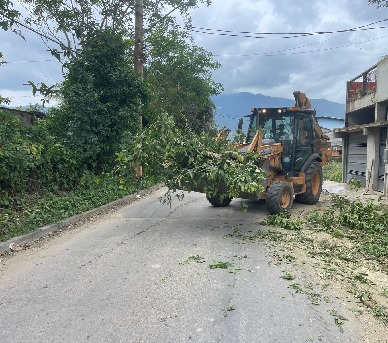 #PraTodosVerem: Retroescavadeira com a pá cheia de resíduos de poda de árvore, no Travessão (Foto: Divulgação/PMC)