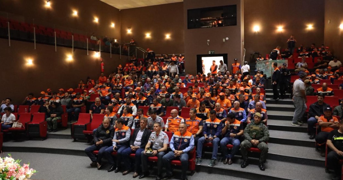 #PraTodosVerem Representantes da Defesa Civil de 39 municípios estão sentados na plateia de um anfiteatro onde foi realizado a oficina preparatória da Operação SP Sem Fogo, em Santo Antônio do Pinhal