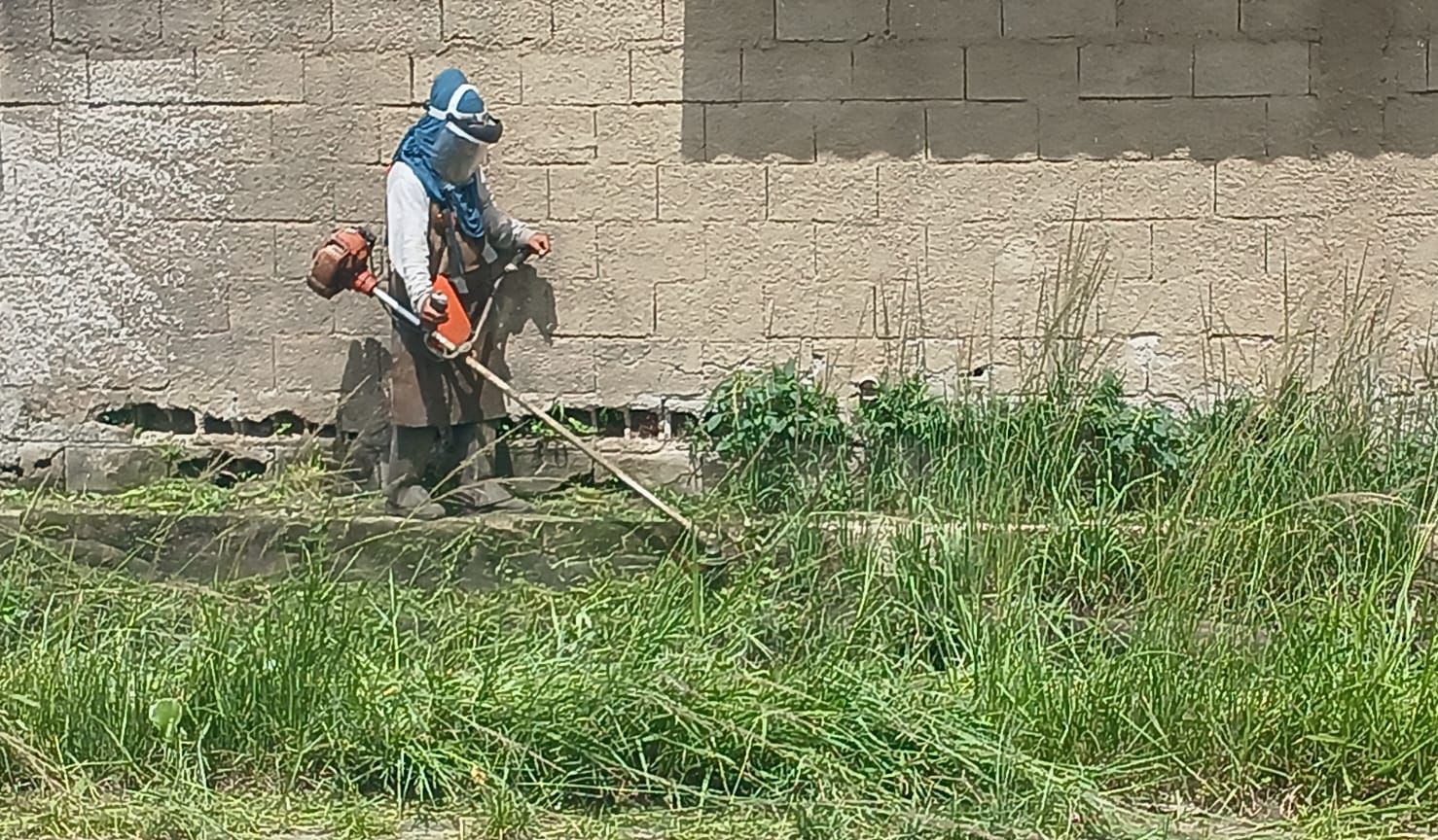 #PraTodosVerem: Bolsista do PEAD faz roçada mecânica em rua de Caraguatatuba (Foto: Divulgação/PMC)