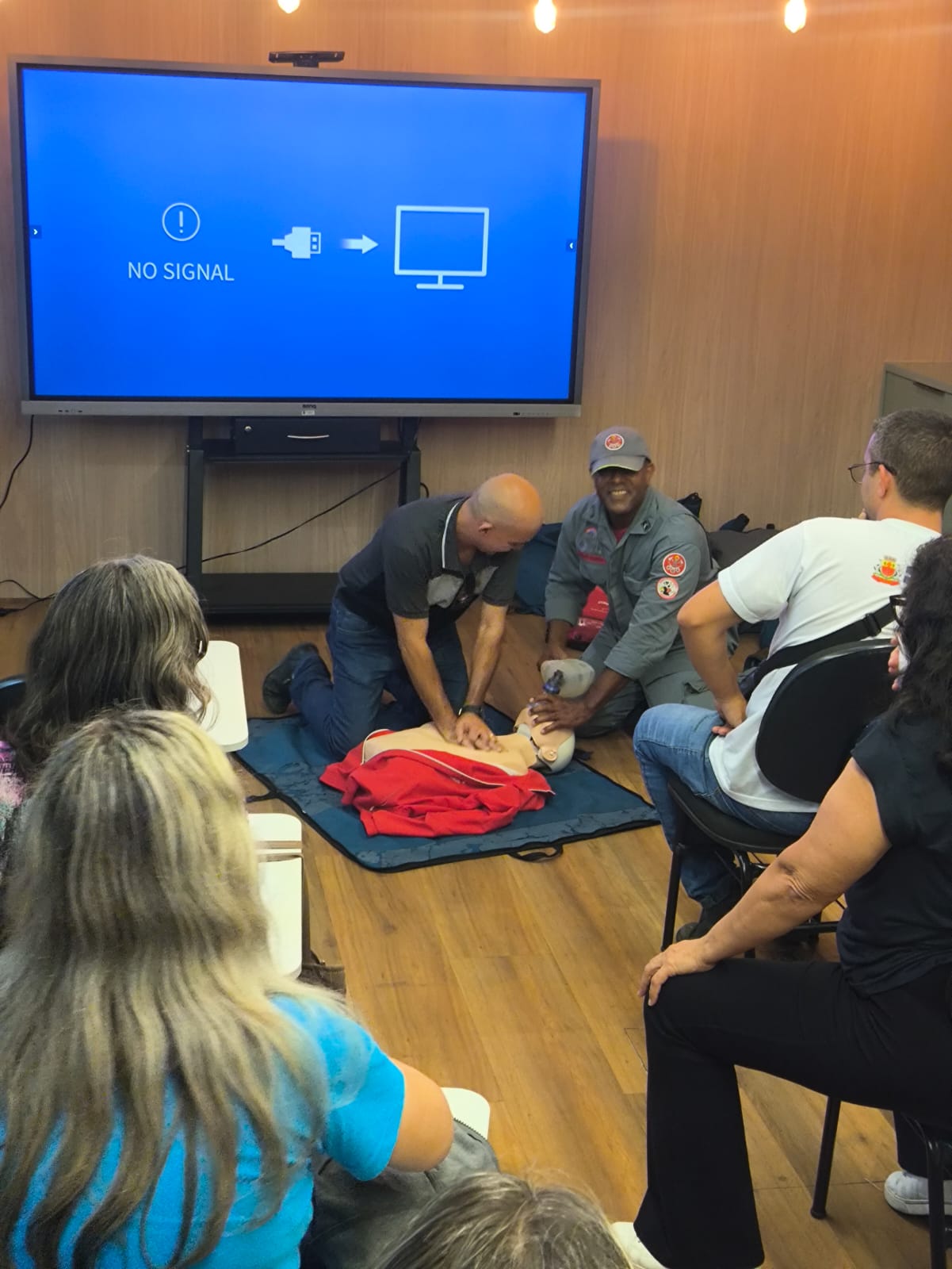Os membros da CIPAA também fizeram o curso de primeiros socorros ministrado pelo cabo PM do Corpo de Bombeiros, Sérgio Giovani Vieira da Silva Costa. Os servidores receberam técnica sobre como agir em situações de crises convulsivas, queimaduras, engasgamentos, incêndios e manuseio de extintores, além do acionamento do Corpo de Bombeiros pelo telefone 193, em casos de emergência.
